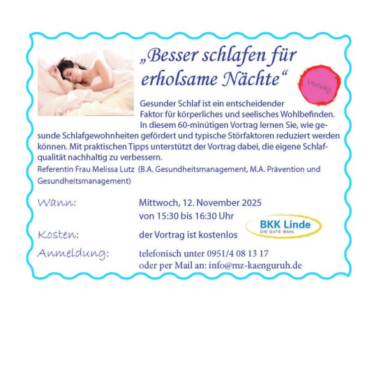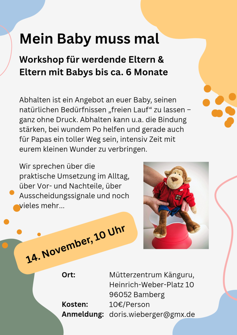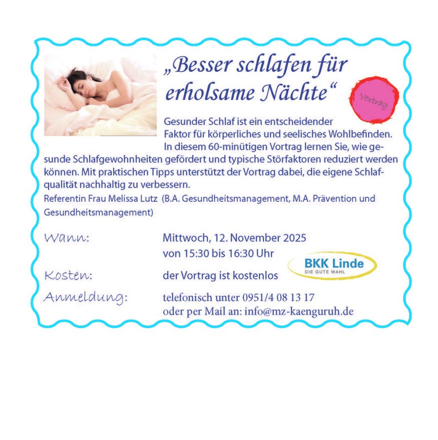 Anmeldung: im Büro unter 0951 4081317 oder per Mail an info@mz-kaenguruh.de